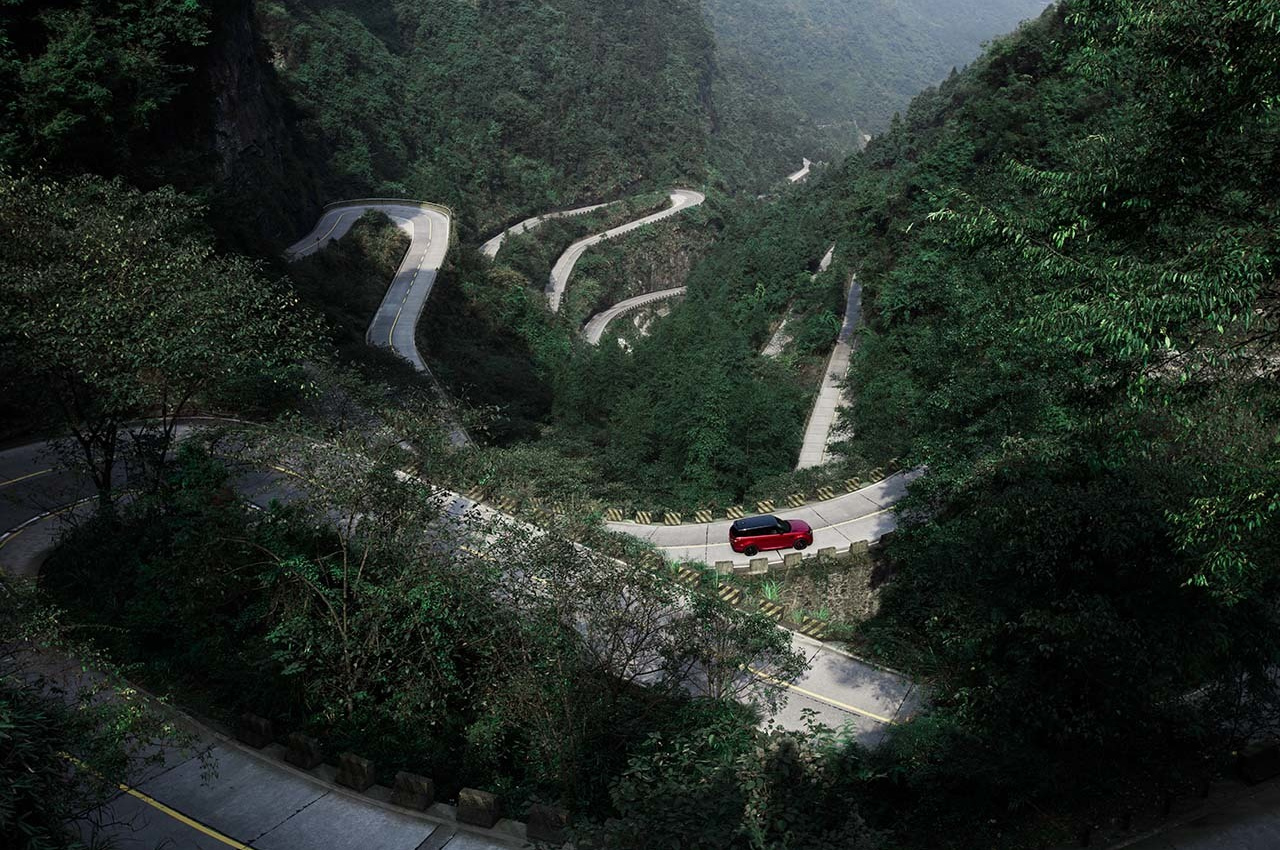 めまいがするほどの99カ所のコーナーリングと、傾斜45度に立ちはだかる999段の階段のある中国の名所のひとつ天門山道。レンジローバースポーツPHEVが、この中国の「天国の扉」階段を登りつめた世界初のSUVとなりました。ガソリンとエレクトリック性能を持つSUVがこの階段を登り、自然岩でできたあの天国の扉へ到達した最初の自動車となりました。