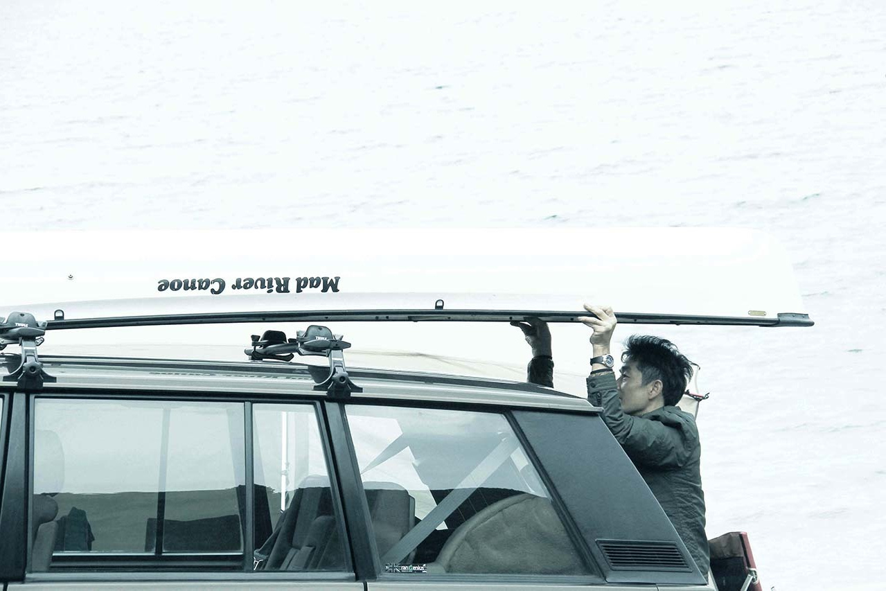 カヌーを積んだクラシックレンジに加え、朝にはもう一台、ランドローバーの名車が登場した。ディフェンダーだ。クラシックレンジとはまた違う雰囲気だが、このステージに合う。