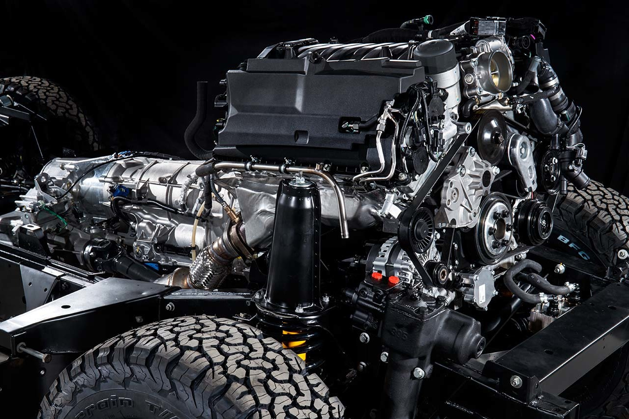 ・1998年、2ndレンジローバーから装備されたインジェクター仕様4.0LローバーV8エンジンで、190馬力を発揮。4速ATを搭載した50周年記念ディフェンダー90に取り付けられました。