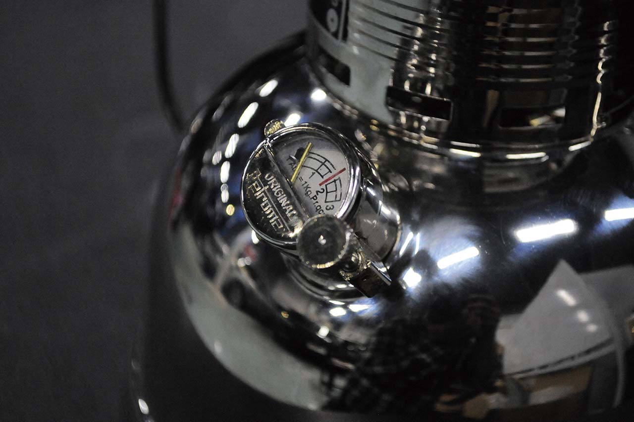 イギリス製とは違い、圧力計やプレヒート専用のノズルなど、まるでドイツ車にも通じる機能の多さ。200個以上のパーツで構成されます。その明るさは、なんと400W相当(イギリス製ヴェイパラックスは60~100W程度)。機能美というべきか、所有欲を駆り立てられる圧倒的な存在感を持っています。