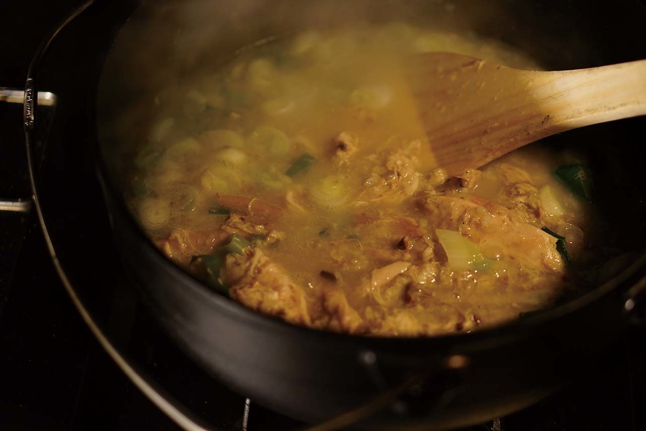 辺りが暗くなる頃には、サムゲタンはグツグツ煮立ち、道中で買ってきた魚介類は炭火で食べ頃。わざわざ持ってきたフランスのあら塩やトリフオイルで味付け。まるで最近流行りのグランピング料理を手際よく仕上げていく。