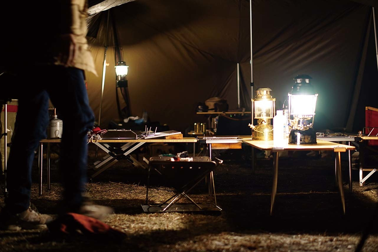 まるで職人のような顔をして、お気に入りの切炭を積み上げ、そっと着火する田中さん。真鍮製の灯油ランタンを加圧し丁寧にプレヒートする篠田さん。手間を楽しんでいるようにも見えるし、大切な夜のためとか、何か明確な目的のために、もっとも合理的な方法で準備をしているようにも思えてくる。