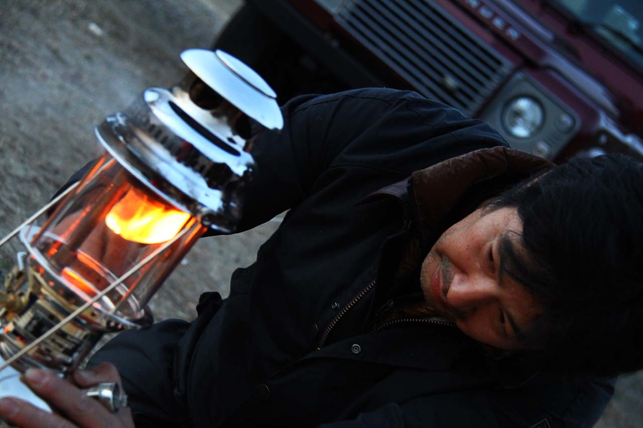 まるで職人のような顔をして、お気に入りの切炭を積み上げ、そっと着火する田中さん。真鍮製の灯油ランタンを加圧し丁寧にプレヒートする篠田さん。手間を楽しんでいるようにも見えるし、大切な夜のためとか、何か明確な目的のために、もっとも合理的な方法で準備をしているようにも思えてくる。