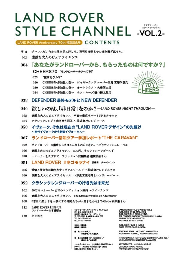 2016年9月発行の「RANGE ROVER STYLE CHANNEL VOL.1」に続き、いよいよ「LAND ROVER STYLE CHANNEL VOL.2」の発刊です。